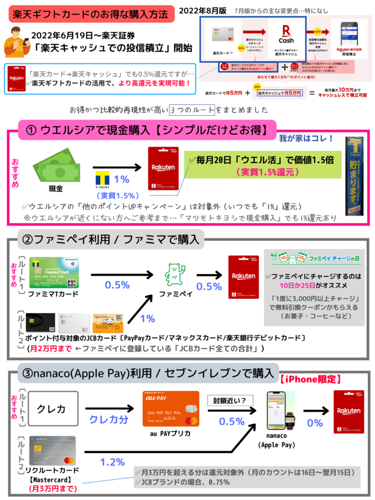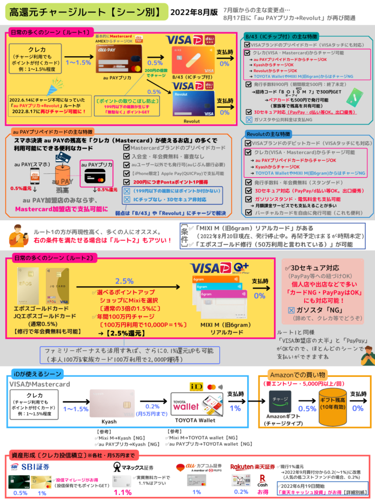 などを活用した「高還元なチャージルート(2022年8月時点)」をまとめました